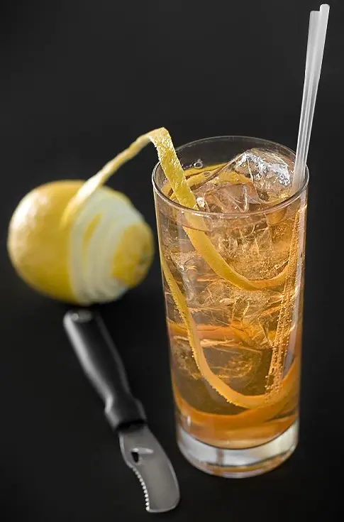 Украсить спиралью лимонной цедры. При необходимости добавить 2-3 дэша Angostura bitters.