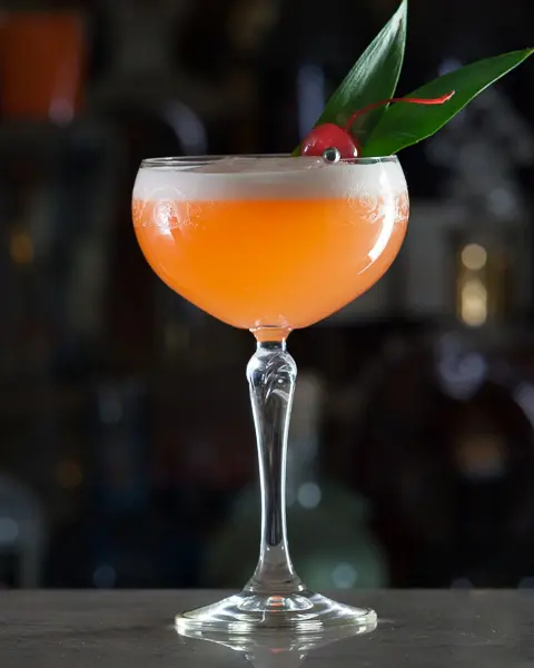 Взболтать все ингредиенты в шейкере и процедить в охлажденный большой коктейльный бокал. Украсить коктейльной вишней.