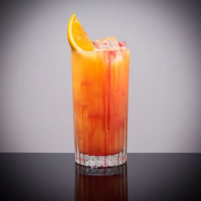 Коктейль Tequila Sunrise очень прост в приготовлении: просто налейте текилу, затем апельсиновый сок и, наконец, сироп гренадина, в стакан тумблер (tumbler). Нет необходимости в шейкере! И все, что вам нужно сделать, это украсить свой стакан долькой апельсина.