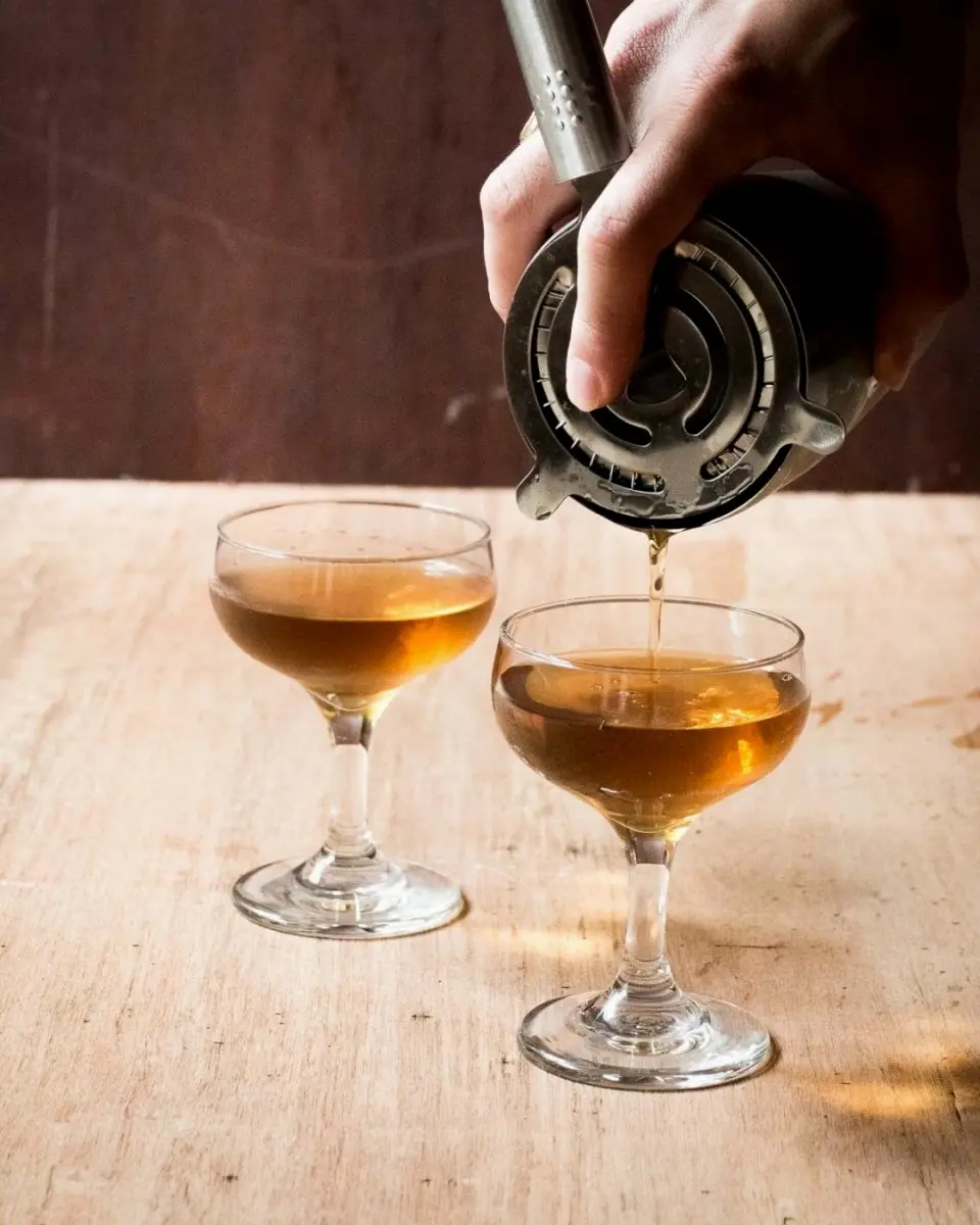 Додати всі інгредієнти до змішувального стакана з льодом і перемішувати до охолодження. Процідити в охолоджену коктейльну чарку (або шале). Прикрасити твистом апельсинової (або лимонної) цедри